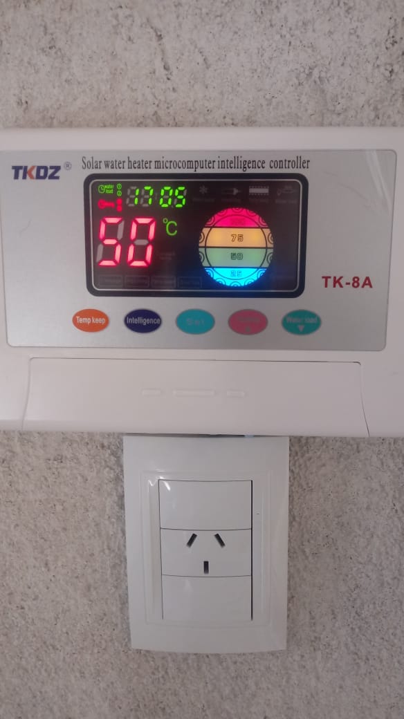 Controlador TK8 con válvula solenoide y sensor de temperatura y nivel de llenado.
